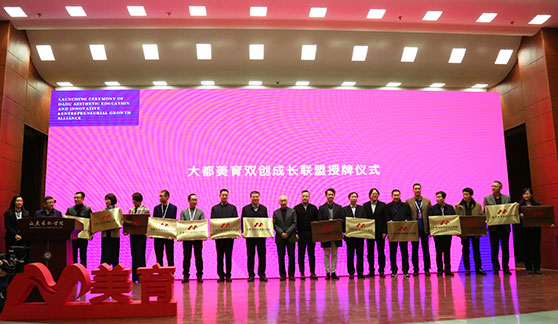智美育心,合作为赢。1月9日上午,“大都美育双创成长联盟”启动仪式在山东艺术学院举行,包含公司在内的16所高校同时授牌“老员工双创实践基地”。公司副董事长张新,太阳成集团tyc33455cc经理刘军以及太阳成集团tyc33455cc部分教师代表应邀参会。
