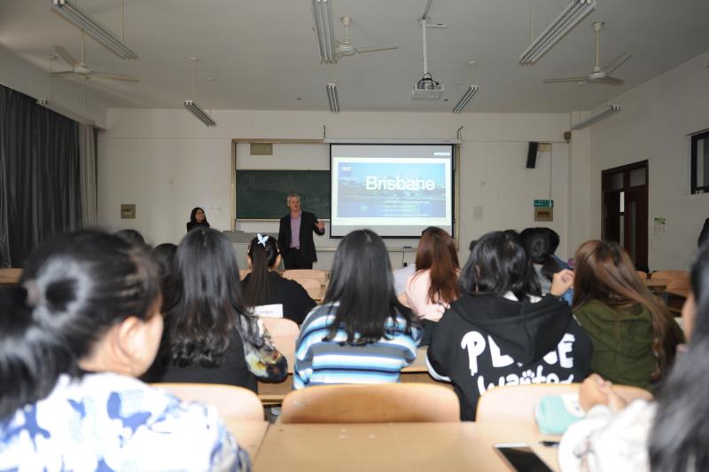 Andrew教授首先给同学们展示了澳大利亚昆士兰州首府布里斯班市的魅力景色和生活环境,对昆士兰科技大学以及商学院的整体概况进行了生动介绍,并对基于两院合作协议框架下的考核标准、入学要求、奖学金政策,在QUT学习2年期间的课程设置,参与企业项目情况、继续深造等方面进行了详细说明。同时还与同学们分享了该校优秀毕业生的成功经验。此次讲座使工商学院员工对昆士兰科技大学和两校合作项目有了详细了解,为有意出国留学的同学提供了有益的信息。