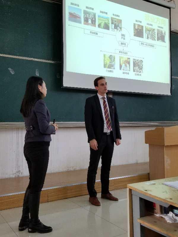 Portier先生首先为学院师生图文并茂地介绍了CAFA国际葡萄酒学院的情况,学院成立于1986年,校区位于“世界葡萄酒之都”波尔多市沙河桐地区,是欧洲顶尖的葡萄酒、烈酒学校,也是波尔多地区唯一一所专业侍酒师学校。徐晓红主任现场做了一场《西餐与葡萄酒礼仪》的讲座,她诙谐幽默的讲解,专业的葡萄酒知识,以及现场葡萄酒礼仪演示和品酒环节,都受到了在座师生的追捧。