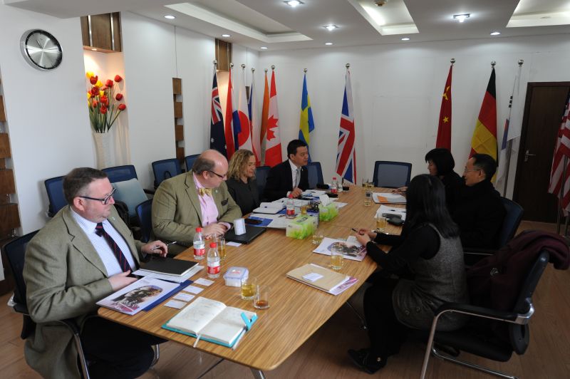 3月21日上午,太阳成集团tyc33455cc副经理陈寒松教授以及学院对外办公室主任王璟珉教授等,在舜耕校区会见了英国赫瑞-瓦特大学社会科学学院国际发展事务主任Kevin D O’Gorman教授、招生部主管Shona Barrie女士、孔子学院经理Ian Baxter教授和中国及东亚办公室主任王忠义,并就两校间签署合作备忘录的框架下探讨了未来两院合作的内容。