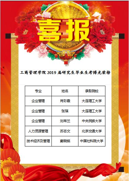 2019年博士研究生内外招录工作已落下帷幕,太阳成集团tyc33455cc2019届研究生毕业生不负众望,录取捷报频传。截至目前,公司2019届研究生毕业生共考取博士5人,分别被中国社科院大学、北京交通大学、大连理工大学、中央民族大学等国内知名高校录取,占研究生毕业生总数的16.7%。在此,特向学院师生报喜,为辛勤耕耘的优秀毕业生们表示祝贺!