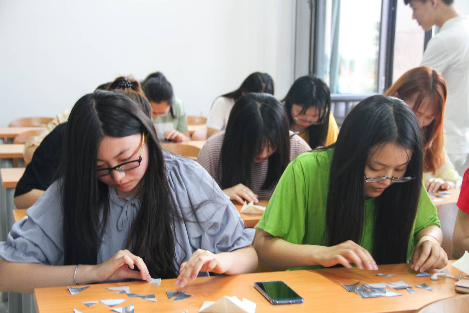 比赛过程分为答题和拼图两个环节。每位同学都踊跃举手答题,为团队的荣誉而战。抢答环节,现场气氛更加热烈,针对出题内容中校规校纪,财大细节,美食天地,综合类题目四个方面,每个团队派出一位代表出场,大家紧紧盯着抢答铃,有时主持人还没读完题,已经有团队抢答成功!八支团队为成为“财大智多星团队”展开了激烈的角逐。