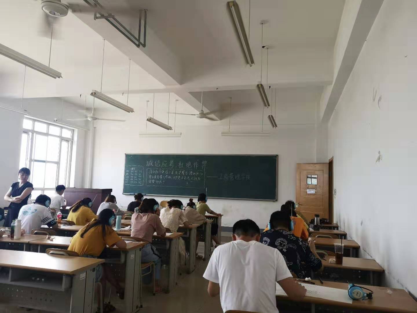 考试期间,学院员工会学习部安排专人在每一个考试教室标注“诚信应考,杜绝作弊”的警示标语,学院领导、带班辅导员多次巡视考场纪律,保障了整个考试过程的有序进行。