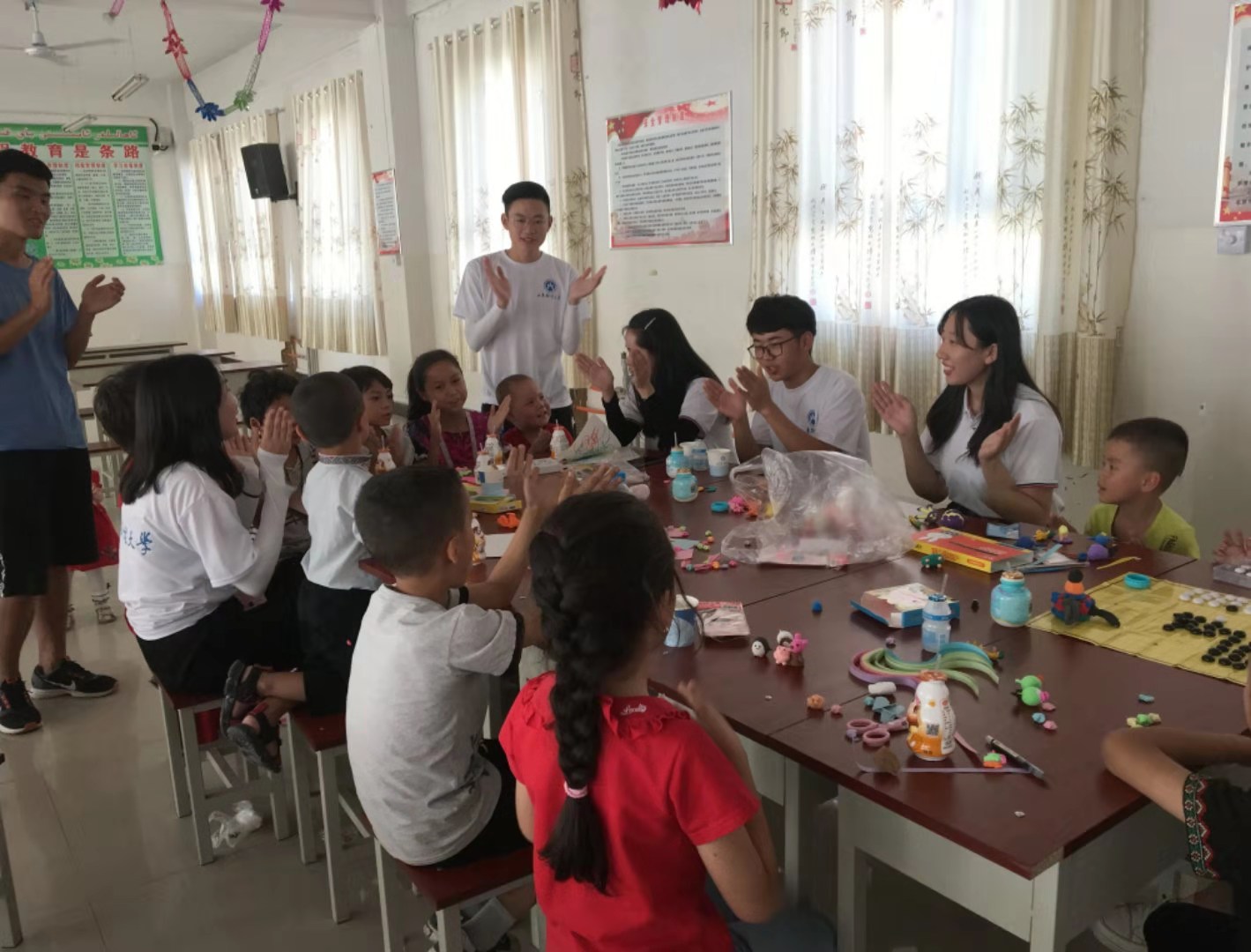 自7月23日至7月27日,“新疆喀什社会实践服务团队”分别参与文化路社区绘制中华人民共和国成立70周年文化墙的活动,以及支教帮扶活动。虽然条件艰苦、烈日当空,团队成员们依然坚持完成文化墙的绘制,同时利用业余时间对当地维吾尔族居民进行普通话教学、绘画学习等支教帮扶活动,得到了当地社区居民的高度赞扬。