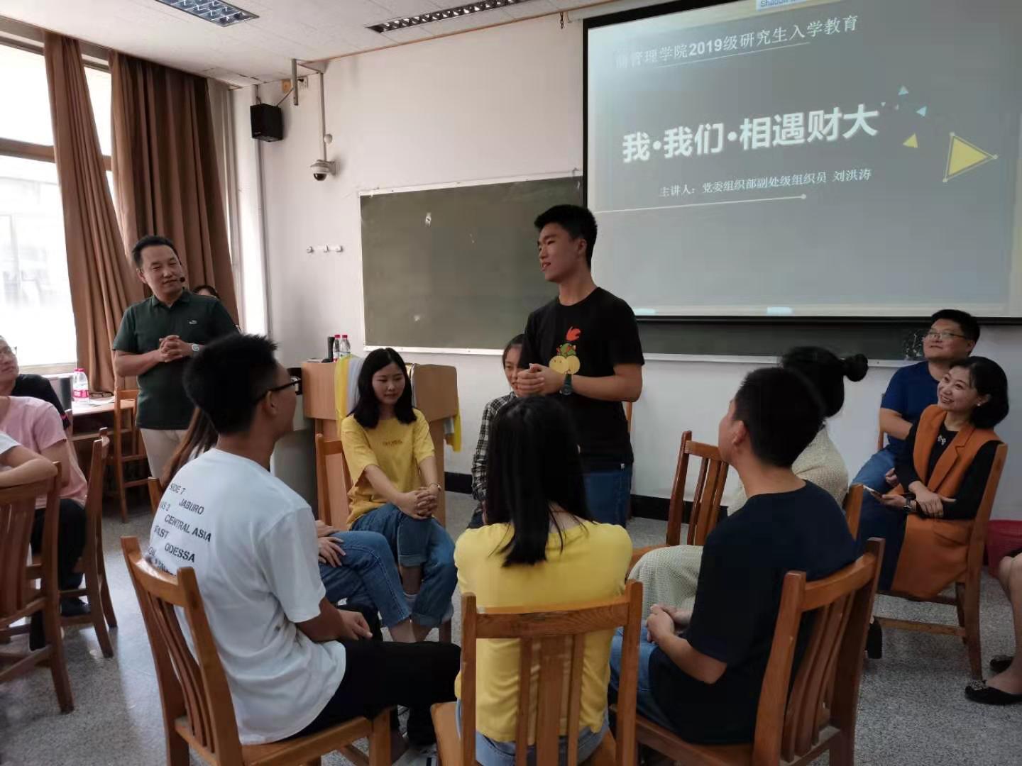 9月16日下午,公司2019级研究生入学团体心理辅导在2号教学楼2208教室举行。本次活动以“我 我们 相遇财大”为主题,旨在促进2019级研究生互相熟悉,深入了解,激发团体动力,促进团队建设。公司党委组织部副处级组织员、国家二级心理咨询师刘洪涛应邀带领活动,公司党委副书记彭艳红、研究生辅导员尤泽民以及2019级全体研究生参加。