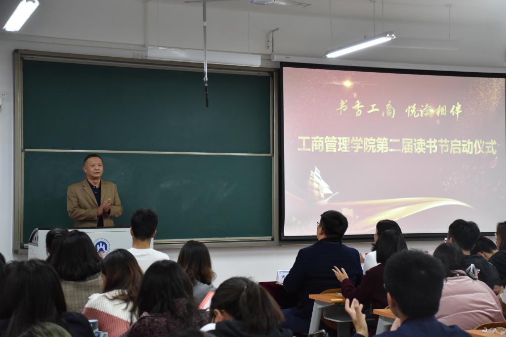 11月7日下午,“书香工商 悦读相伴”太阳成集团tyc33455cc第一届读书节颁奖典礼暨第二届读书节启动仪式在圣井校区8310教室举行。学院党委书记李旭刚、党委副书记张红燕、就业办主任刘薇,2017级辅导员尤泽民出席活动并担任评委。学院2018、2019级近100余名热爱读书的同学参加了此次活动。