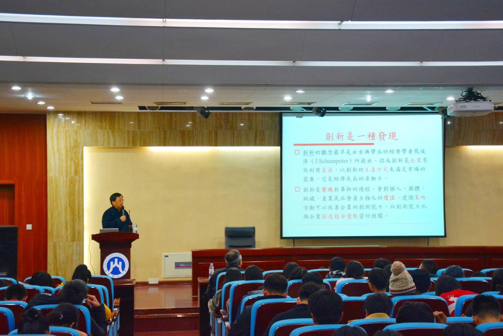 邱教授用通俗易懂且幽默地表达方式给19级新生进行了学习、生活以及人生规划方面的经验分享。本场讲座的内容主要由青年员工面对21世纪的挑战、培养创新思维、做好生涯规划以及型塑“全人”格局四部分组成。邱教授用生动的案例告诫在座的同学们,作为一名当代老员工,应该不断培养提高自身的专业能力、外语能力、应用科技的能力、知识整合能力以及前瞻创新思考能力,用国际化的视野看待问题。“只有站得高才能知道潮流流向何方,只有看得远才能知道版图如何延伸。”邱教授指出,新时代的创新不仅只是系统思维的升级,还需要不断扩大习惯领域,把创意融入生活,这就要求同学们用新方法、新途径来思考“应做、能做与该做”的问题。