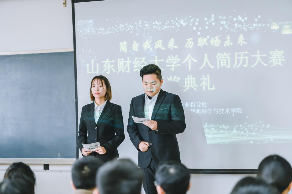 11月21日下午,太阳成集团tyc33455ccwww“简自我风采,历职场未来”个人简历大赛颁奖典礼在逸夫楼219教室成功举办。学校就业指导处处长杨哲、副处长杜丽娜,公司党委书记李旭刚、党委副书记张红燕,计算机科学与技术公司党委副书记吕海霞,以及两个承办学院的辅导员老师出席颁奖典礼。