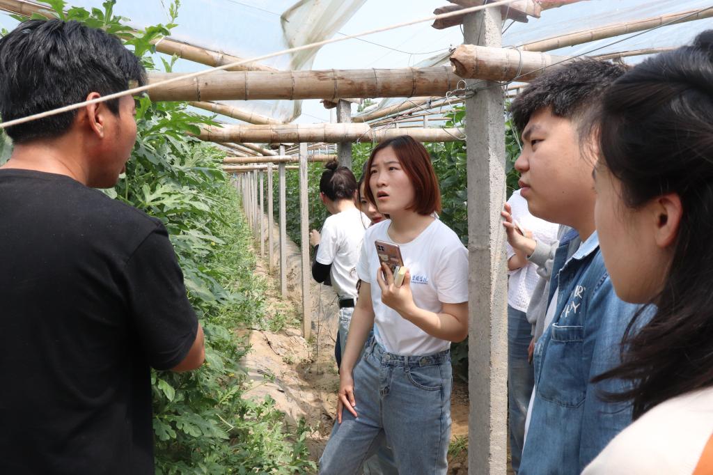 村里的党员同志还带领同学们参观了党员示范果蔬大棚,介绍了果蔬的销售现状以及产业基地的建设规划。整整齐齐的种植架,长势喜人的瓜苗,让同学们更深切地体会到了“实干兴邦,实干惠民”的含义。员工第二党支部主要为市场营销专业的员工,同学们积极发挥专业优势,纷纷对村里的果蔬大棚产业提出了营销建议,受到了村里党员同志的认可。