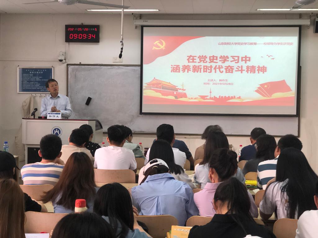 韩作生指出要“从百年党史中汲取智慧和力量,争做新时代的奋斗者”。中国共产党的历史是一部为国家独立、民族解放、人民富裕的奋斗史,是一部探索适合中国国情的社会主义经济建设道路史,是一部波澜壮阔的改革史和创新史,也是一个丰富的思想宝库、经验宝库。在这个过程中我们党积累了许多经验教训,这对我们做好当前的学习和工作具有十分重要的借鉴和指导意义。韩作生提出要在党史学习中用党的科学理论武装头脑,不断创新,锐意进取,响应习近平总书记的号召把论文写在祖国大地上,同时把人生书写在祖国大地上,让青春绽放出耀眼的光彩!