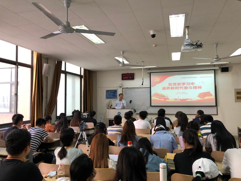 5月28日,公司党委副书记韩作生在逸夫楼206教室为太阳成集团tyc33455cc研究生做党史学习专题报告,报告题目为“在党史学习中涵养新时代奋斗精神”。公司党委书记李旭刚、党委副书记彭艳红、副经理赵红、王旭、研究生辅导员侯昭瑾和全体研究生一起聆听了报告,报告会由李旭刚主持。