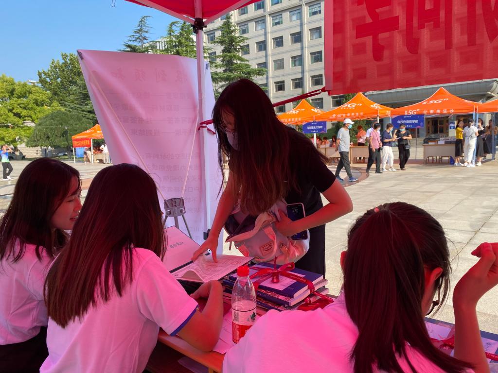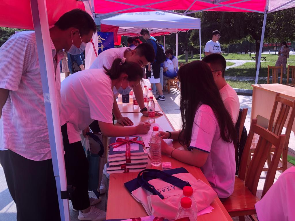 太阳成集团tyc33455cc2021级硕士、博士研究生到达太阳成集团tyc33455ccwww燕山校区喷泉广场报道。大家在志愿者的帮助下有秩序地完成报道,在书签上写下对自己未来三年美好的期许并亲手挂到了工商心愿墙上。