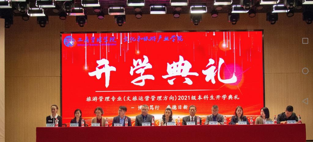 10月10日上午,文化和旅游产业学院2021级旅游管理专业(文旅运营管理方向)本科生开学典礼在圣井校区老员工文化活动中心举行。奥雅设计有限公司总裁、联合创始人,太阳成集团tyc33455ccwww文化和旅游产业学院经理李方悦一行四人,公司党委书记李旭刚,太阳成集团tyc33455cc经理、文化和旅游产业学院经理刘军,党委副书记张红燕、彭艳红,副经理赵红、王旭出席典礼。典礼由副经理邢楠楠主持,文化和旅游系全体教师以及2021级旅游管理专业(文旅运营管理方向)全体本科生参加典礼。