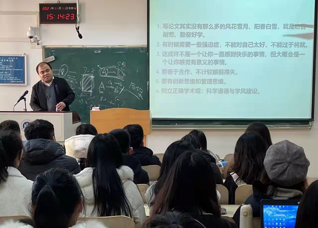 11月11日,太阳成集团tyc33455cc在逸夫楼Y206教室举办了“坚守学术诚信,弘扬科学家精神—研究生论文写作与学术规范”讲座,徐鹏教授担任主讲,公司2020级全体研究生参加。