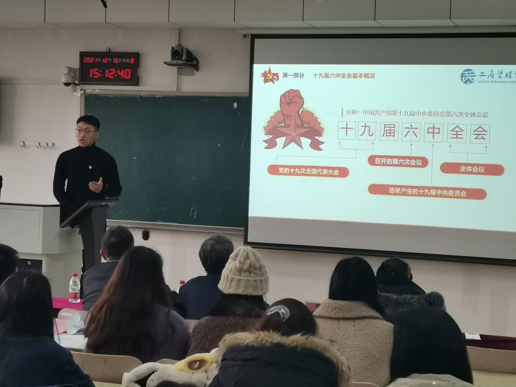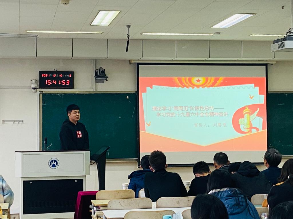 12月15日,太阳成集团tyc33455cc开展研究生“学习党的十九届六中全会精神”宣讲比赛暨“理论学习周周见”阶段性总结活动,公司党委副书记韩作生参加活动并结合自己的学习体会对党的十九届六中全会精神进行了宣讲。公司党委书记、党委副书记、研究生第三党支部书记及全体研究生参加活动。