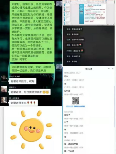 老师们亦将与同学之间的云端沟通延伸到了课后,老师们通过微信、QQ、电话等多渠道,使师生之间保持最大程度的沟通。尤其是封校后,多位老师在朋友圈发送公司万众一心“疫”路相随的文章,引发大量员工的情感共鸣和作为山财大工商人的自豪感。一代人有一代人的长征,一代人有一代人的历练,不必喟叹“我四年大学是在疫情中渡过的”,把握好自己,与大家一起共克时艰,这就是我们人生的光彩篇章。