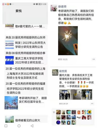 在确保线上教学正常推进、保质保量完成公司研究生复试工作的同时。面对愈加严峻的考研升学形势,在家中等待考研复试调剂的工商毕业班员工的诉求也不容忽视。对此,学院各领导老师及时摸排,精心指导,多措并举全力助力员工考研复试。赵世民等老师更是积极发动身边朋友收集自己熟悉高校相关专业研究生的调剂信息,不断向同学们提供各大高校的硕士研究生招生调剂公告。