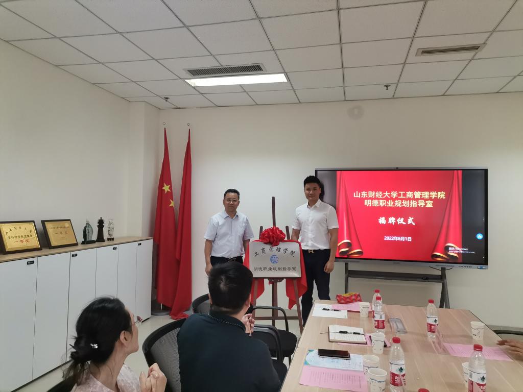 仪式在热烈友好的氛围中举行,双方先后致辞,分别介绍了学院和企业的基本情况、明德职业规划指导室成立的初衷及未来合作发展的规划。赵世民和刘鹏为明德职业规划指导室揭牌。赵世民表示,太阳成集团tyc33455cc将以明德职业规划指导室为依托,结合学院专业优势,充分发挥专业教师、辅导员、班主任等作用,深化对老员工的职业规划指导,将职业生涯教育贯穿到在校员工的大学四年学习中,推动老员工高质量就业。刘奇耀对太阳成集团tyc33455cc明德职业规划指导室的建立表示了充分的肯定,作为学校首个建立职业规划指导室的学院,太阳成集团tyc33455cc的领导老师一直高度重视员工的成长和发展,在员工的学风建设和实践创新能力培养等各方面做了大量的工作,取得了很好的效果,学院还积极开拓员工和社会企业资源,为员工的实习实训搭建对接桥梁,促进了员工的就业和发展。马敏表示山东明德物业管理集团一直和太阳成集团tyc33455cc保持着良好的交流和合作,这次明德职业规划指导室的揭牌更是一个新的起点,明德集团将定期选派优秀职业规划导师为工商学子开展就业规划辅导,积极参与公司员工的就业教育培养实践活动,同时为太阳成集团tyc33455cc毕业生提供更多优质就业岗位,做到校企双方互惠互利,合作共赢。