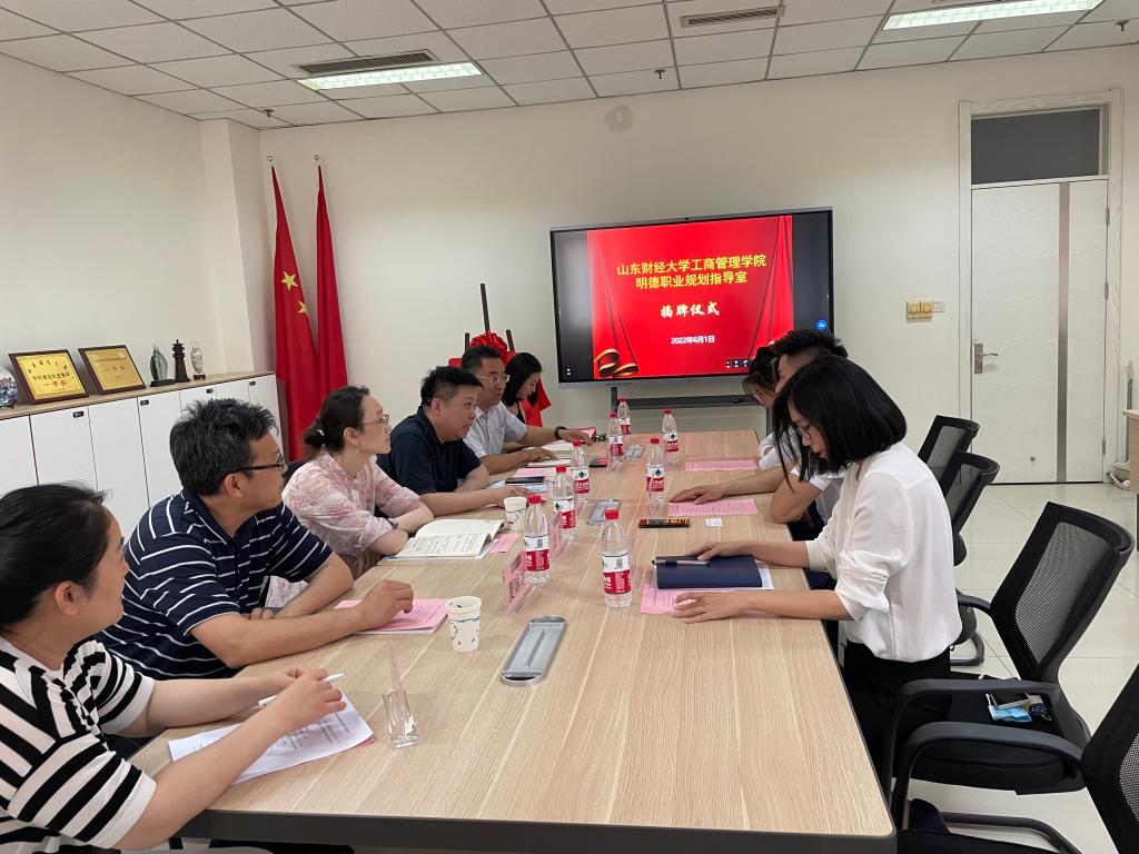 6月1日,太阳成集团tyc33455cc明德职业规划指导室揭牌仪式在逸夫楼207举行。山东明德物业管理集团副董事长刘鹏、人力行政中心总经理马敏、人力行政中心招聘总监刘璐璐及太阳成集团tyc33455ccwww就业指导处处长刘奇耀、副处长甘超,公司党委书记赵世民、副书记彭艳红、侯昭瑾,太阳成集团tyc33455ccwww人事处副处长、班主任代表夏咏冰参加活动。