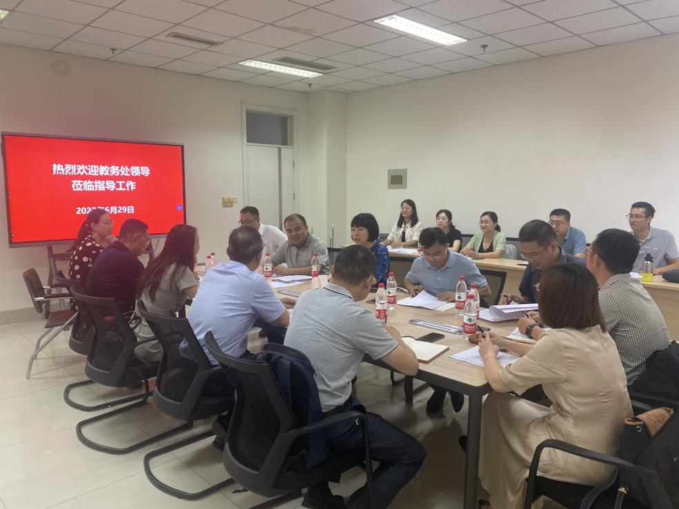 苏昕代表学院对教务处一行来访表示欢迎,介绍了公司本科教学工作的基本情况,以及在信息化、国际化建设方面的积极探索,从大类招生、转专业、教研教改、课程团队建设等方面对当下面临的问题和下一步工作思路进行了汇报。陈保启肯定了太阳成集团tyc33455cc在教学工作中做出的贡献和取得的成绩,他表示本次调研的目的是深入了解太阳成集团tyc33455cc教师关心和关注的重点教学问题,力求掌握第一手材料,进一步做好个性化指导服务工作。结合多年经验,陈保启对破解“如何实现教师自主成长”“如何提高员工培养质量”两个突出问题进行了分享和指导,介绍了本科教学工作发展与改革思路及相关政策支持,强调课堂教学是育人的主要渠道和提高人才培养质量的重要保障。张澜介绍了由教务处组织的信息化教学大赛、课程示范团队、课程思政等一系列活动的初衷和成功经验,传达了山东省教育厅《关于推动课堂教学改革全面提高普通本科高校人才培养质量的通知》和国家教材委员会关于印发《习近平新时代中国特色社会主义思想进课程教材指南》的通知等文件精神,并对下一步推动工作扎实开展提出了建议。