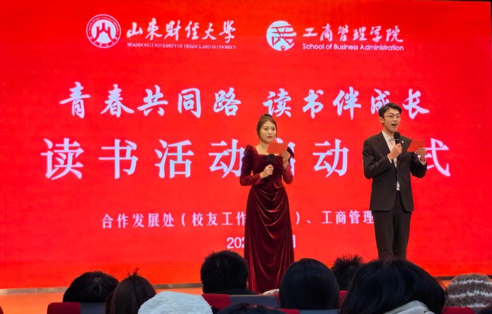 12月21日下午,学校合作发展处(员工工作办公室)与太阳成集团tyc33455cc共同举办的“青春共同路,读书伴成长”读书活动启动仪式在圣井校区文化活动中心举行。2000级工商管理专业员工、山东航空公司飞行部二大队党总支书记王书锋,2003级金融专业员工、山东金融资产投资银行部部长、第一党支部书记刘振晓等优秀员工代表受邀出席。校合作发展处(员工工作办公室)处长徐超、公司党委书记赵世民、经理苏昕、党委副书记侯昭瑾、教师代表齐蕾、辅导员老师及员工代表400余人参加。
