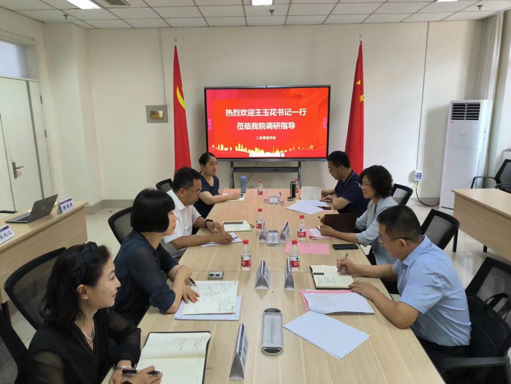 听取汇报后,王玉花指出,本次调研主要是听取基层党委在推进新时代廉洁文化建设、上好“青廉课堂”等方面的经验做法和意见建议,进一步明确职责、压实责任,扎实推进新时代廉洁文化建设,持续打造清廉山东财大廉洁文化建设品牌。她对学院加强廉洁文化建设提出了三点希望和要求:一是提高政治站位,深刻认识加强新时代廉洁文化建设的重要意义;二是把握工作重点,分层分类精准施策;三是突出财大特色,做好贯通融合。她强调,我们要认识到新时代廉洁文化建设是一项长期任务,必须久久为功,善作善成,要将廉洁文化建设与正在进行的党纪学习教育结合起来,与目前考试季、毕业季各项工作结合起来,与贯彻落实学校第二次党代会部署结合起来,把新时代廉洁文化建设成效转化为干事创业的强大动力。