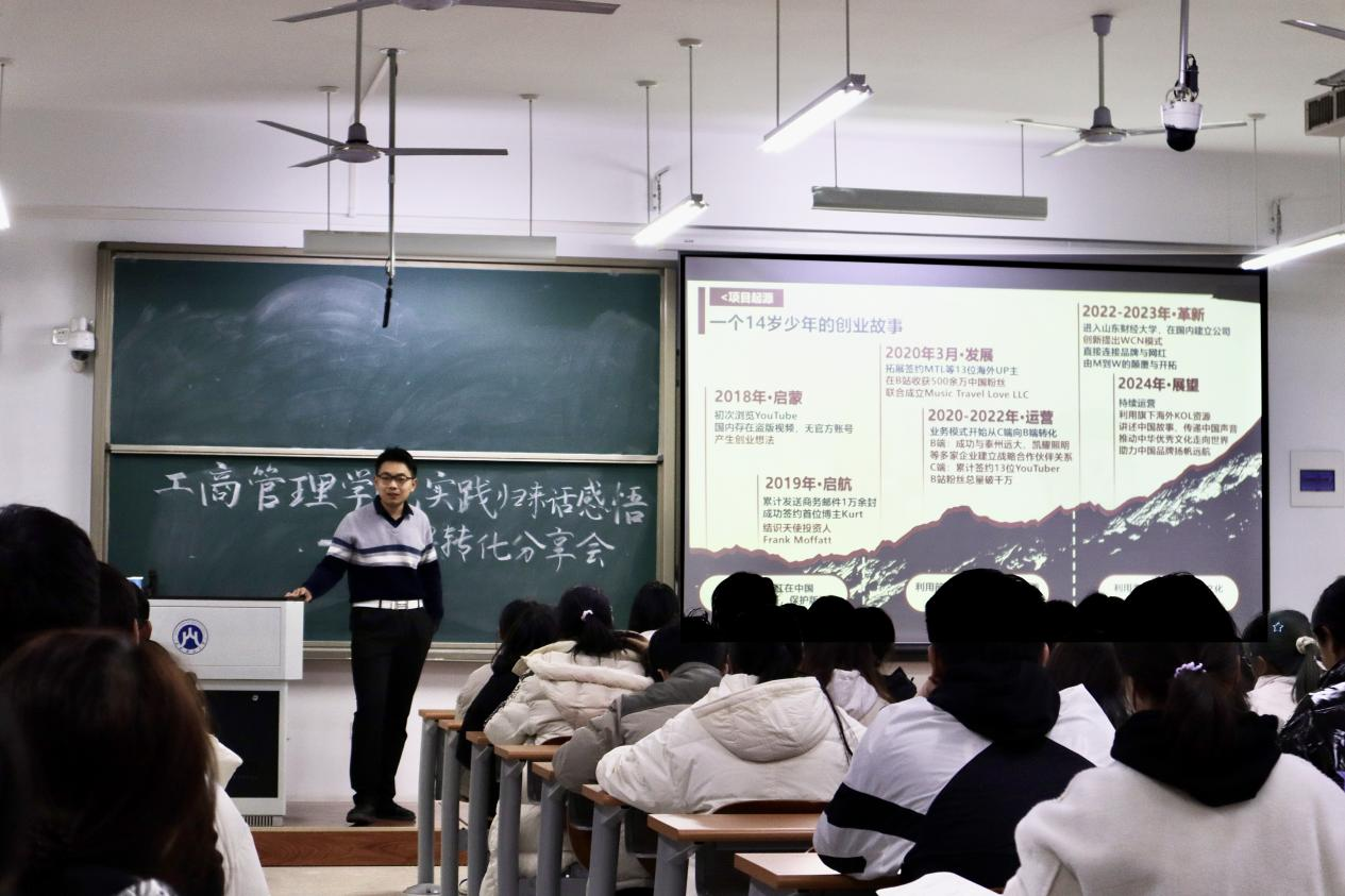 11月20日晚,公司举办“从创业者到全国金奖—金奖背后的成果转化逻辑”分享会,up up文化创始人、2022级旅游管理专业本科生李春霖分享了创业经历和参赛经验,公司2023级、2024级员工参加本次活动。